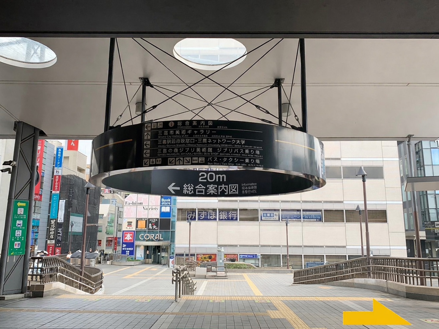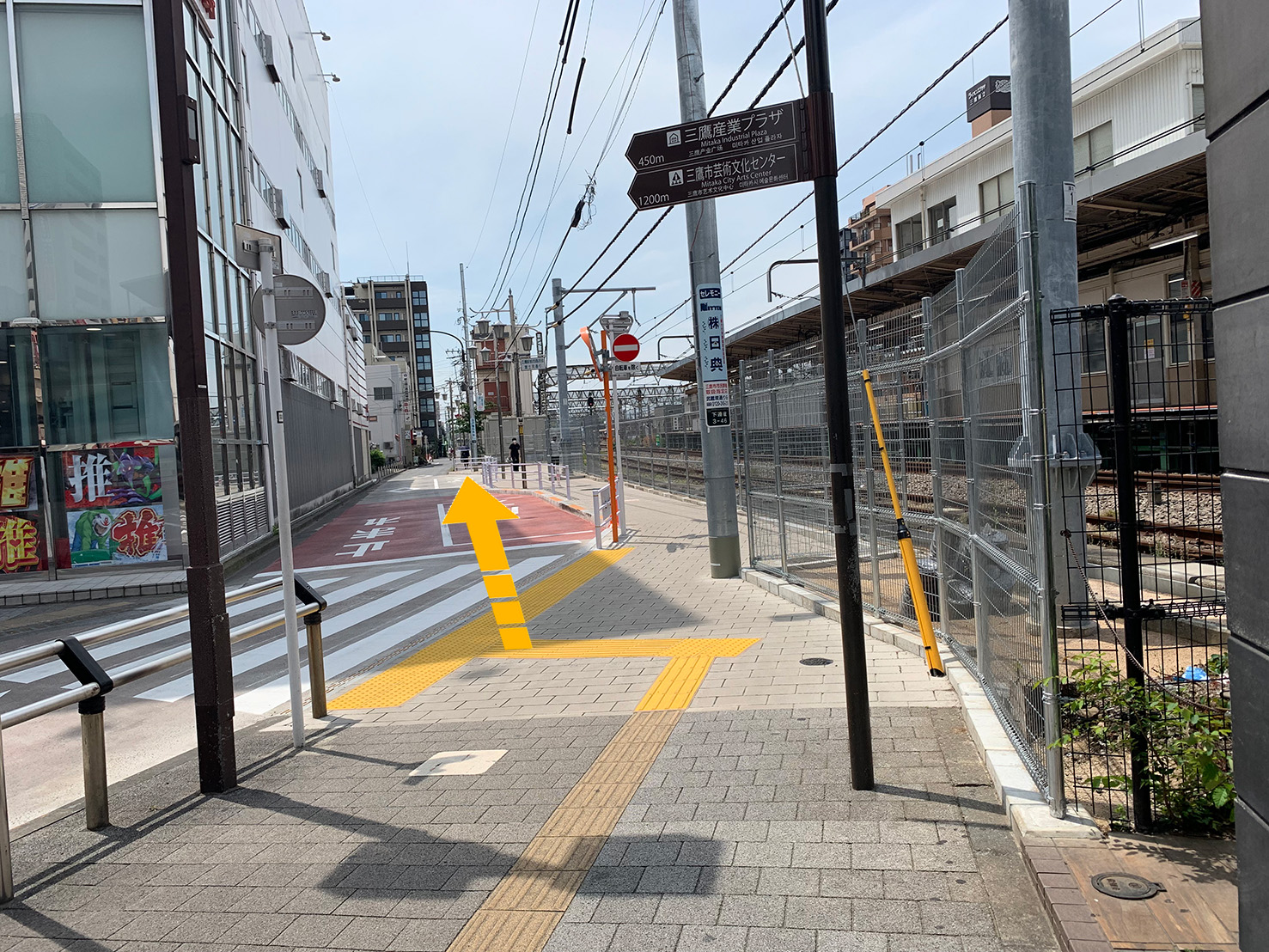 1.三鷹駅南口を出て、すぐに右方向に進みます。