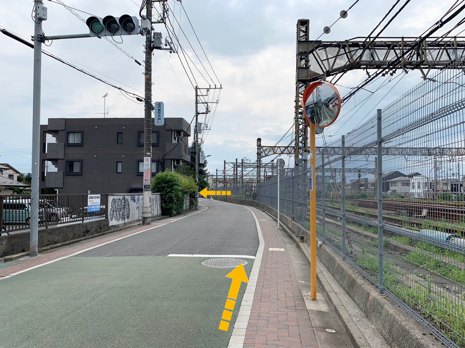 4.さらに線路沿いを真っすぐ進みます。