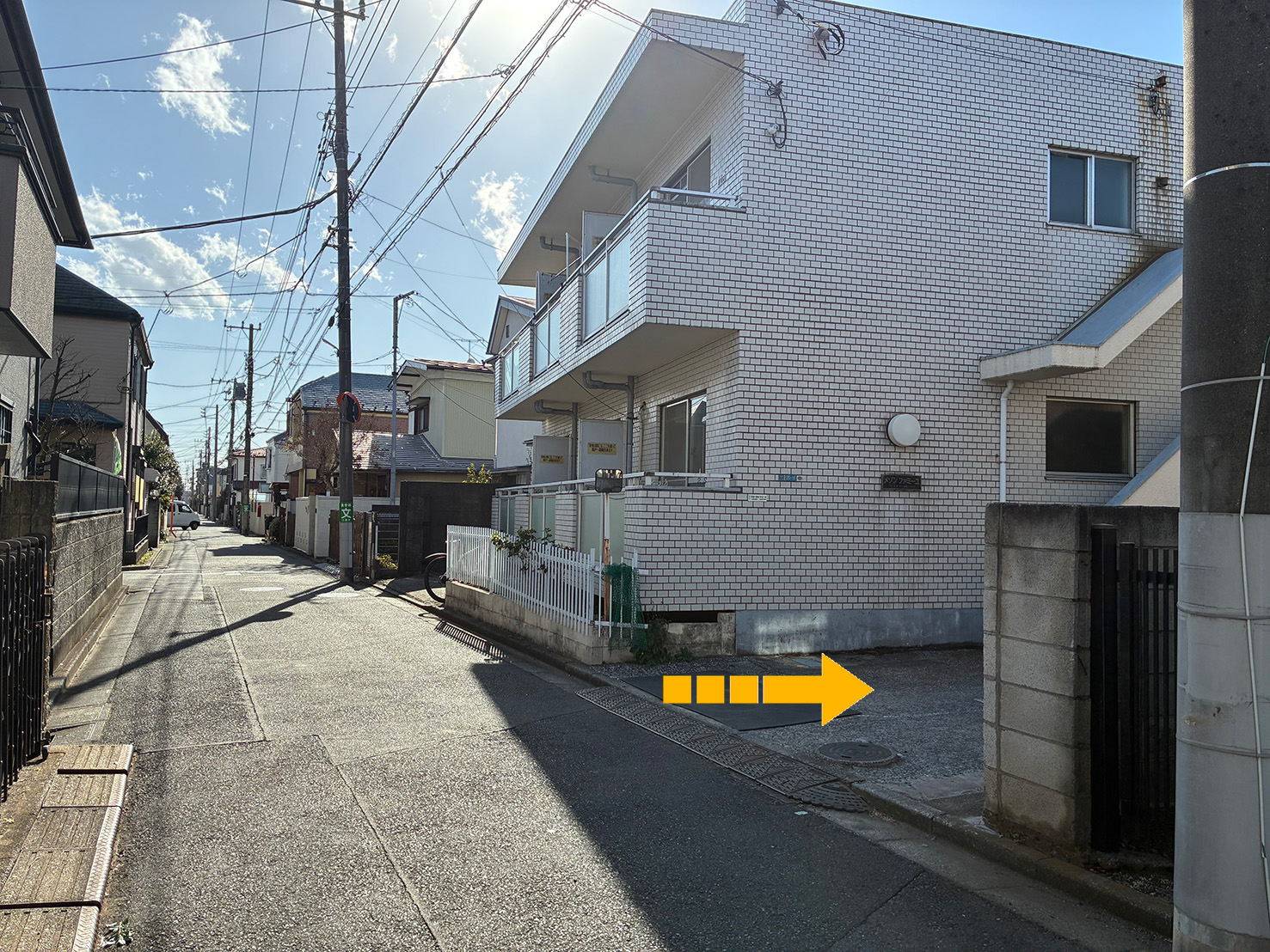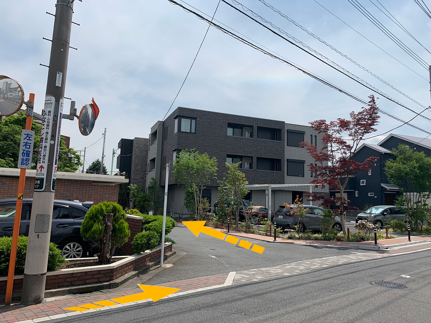 6.曲がり角の目印になるマンションが見えてきます。